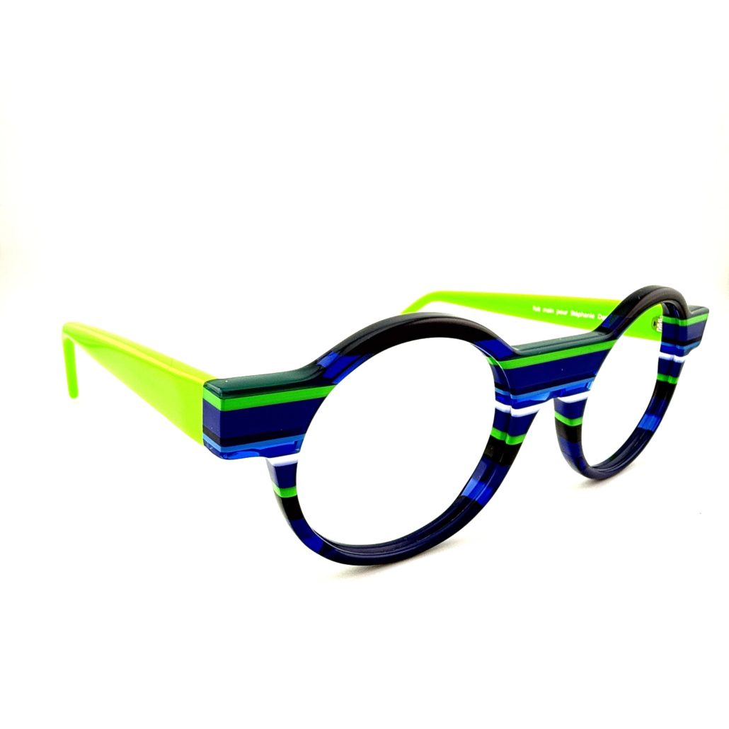 Lunettes de Vue De la Marque Wissing Modèle 3251 Coloris Bleu et Vert Fluo / Multicolore Ronde – Monture Unique